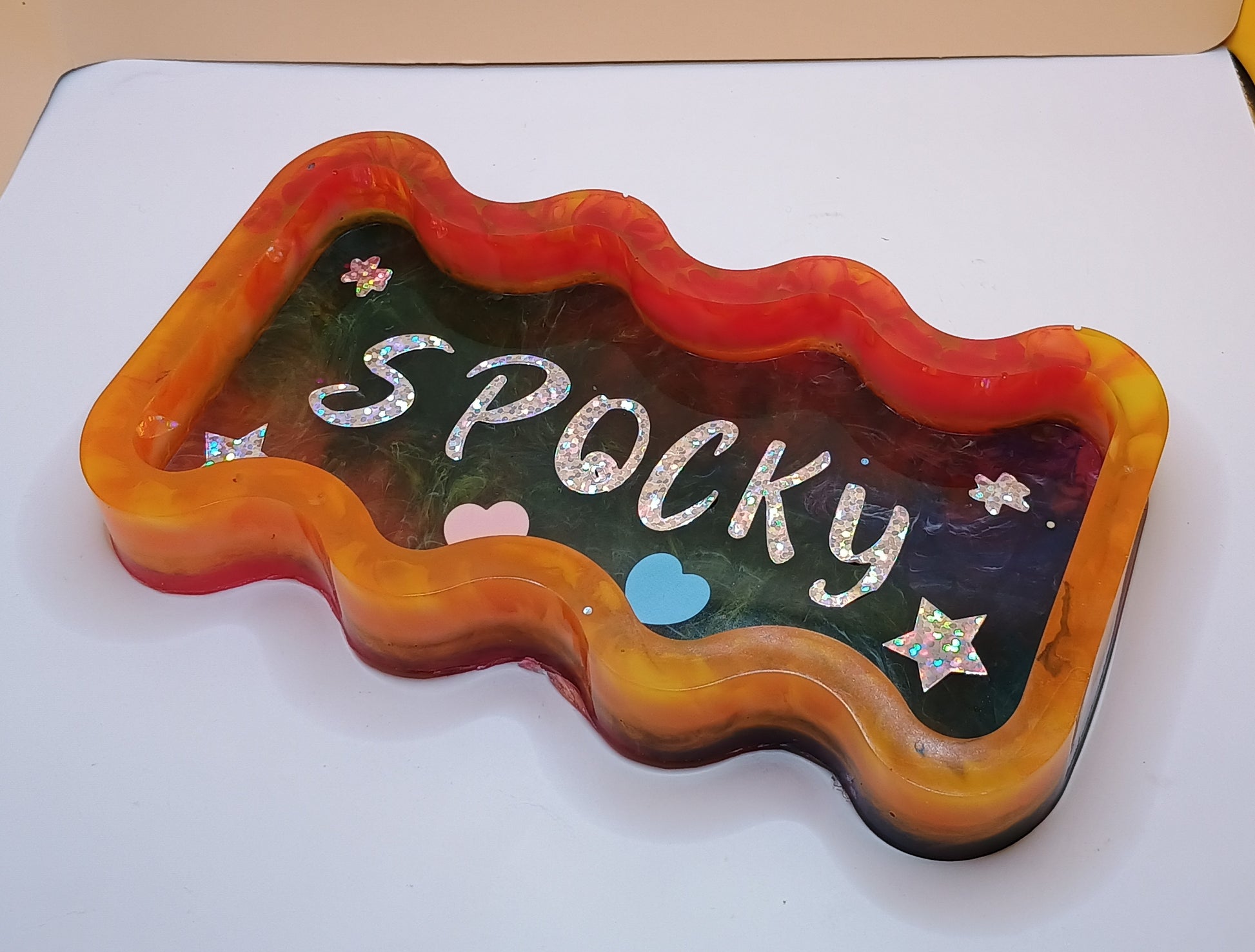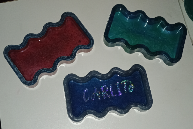 Die Schale hat die gewellte-Form . Farbe kann in deinen Wunschfarben gegossen werden. Gern mit Glitzer. Gern mit Personalisierung , Text, Motiv, Name oder Foto.