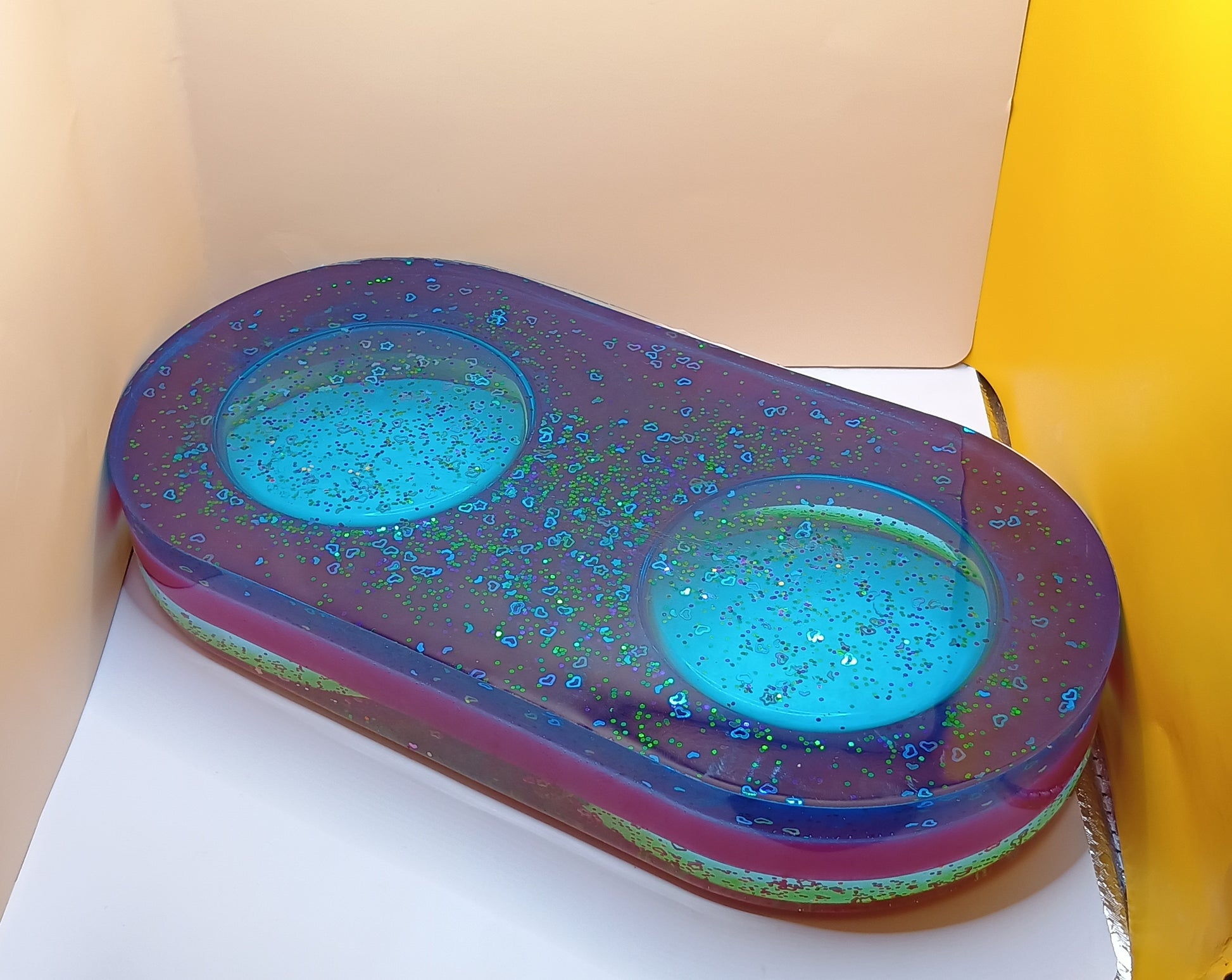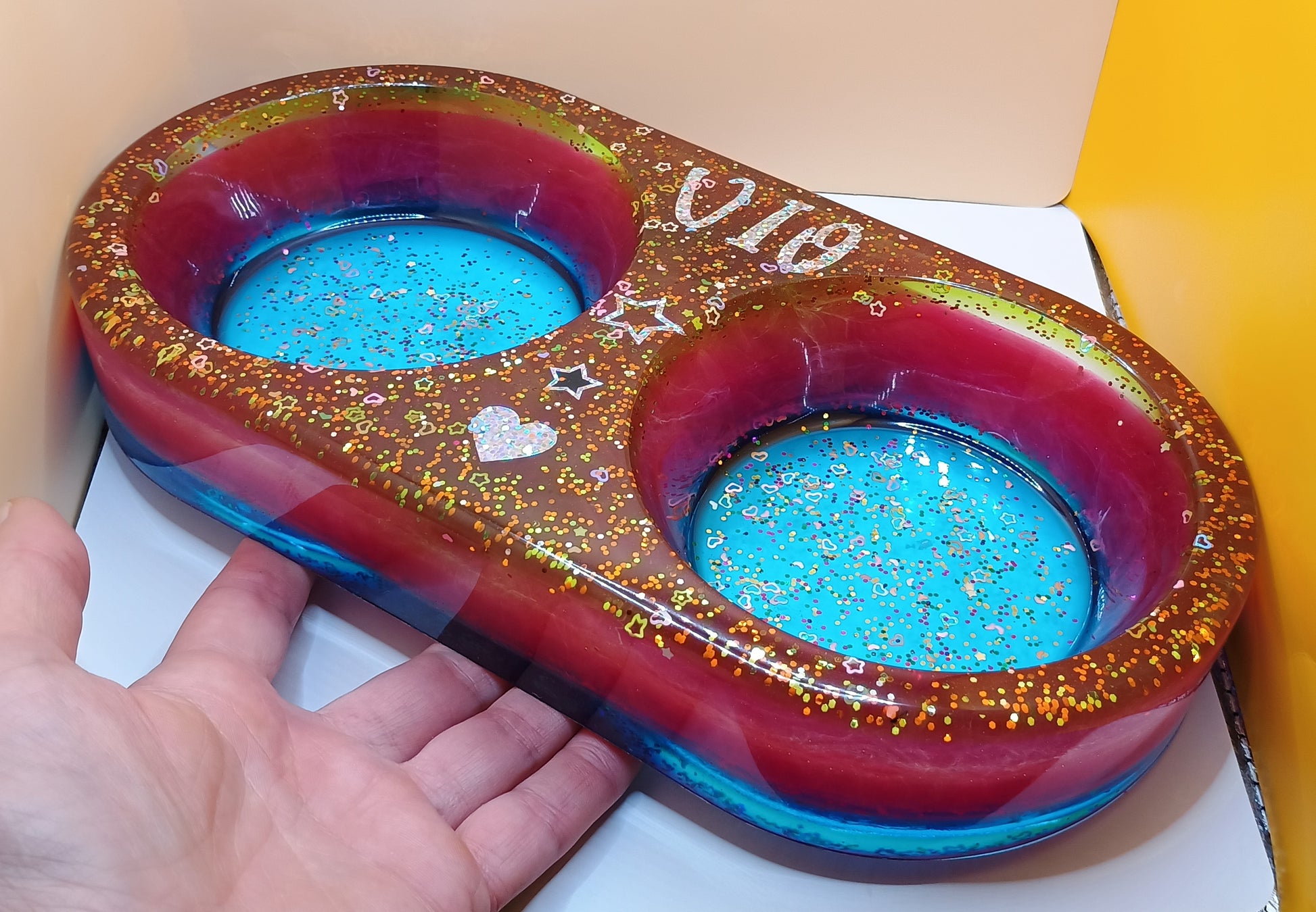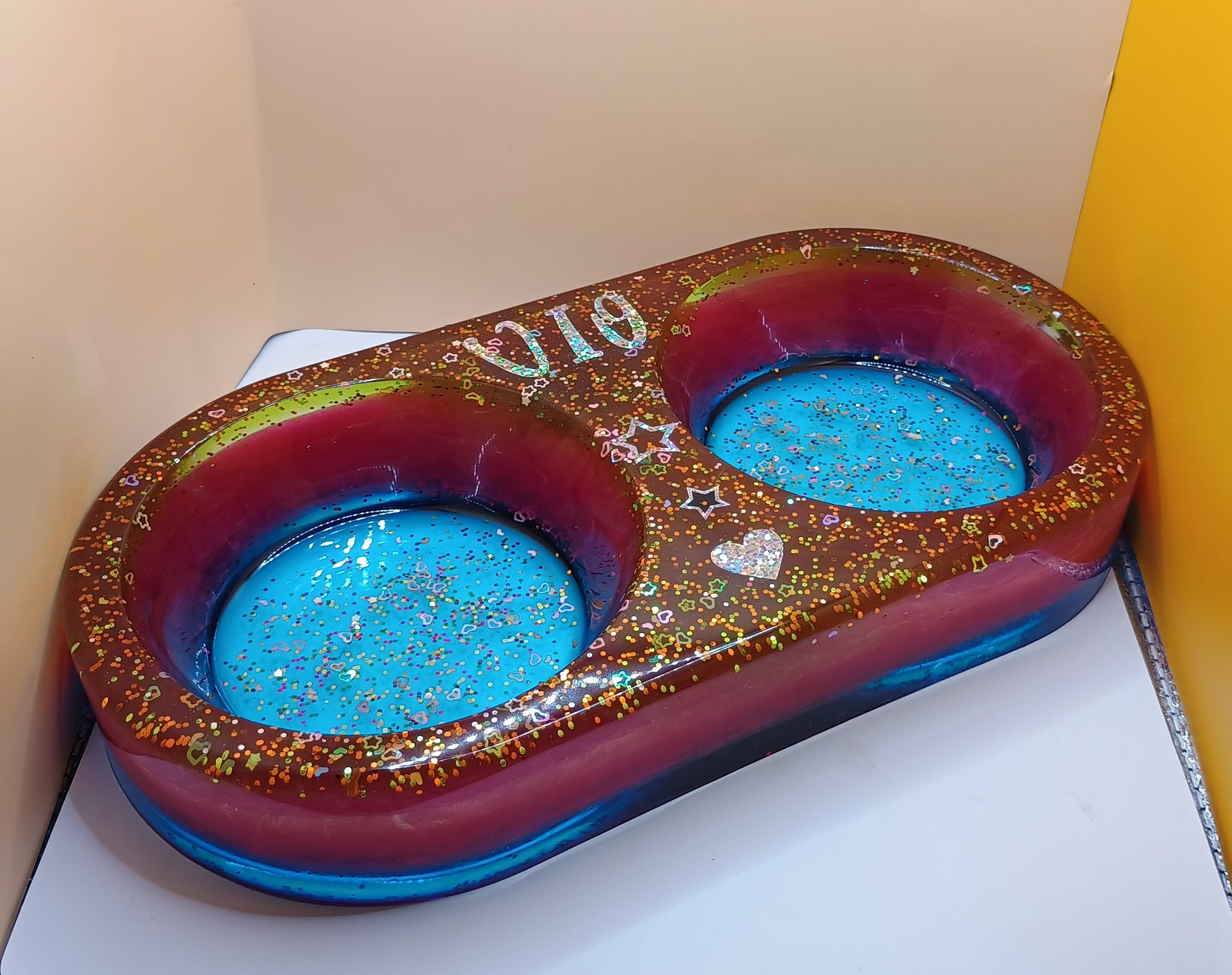 Unikat – Futterschalen DOPPELT – Futter / Wasser Schale aus Epoxidharz gegossen